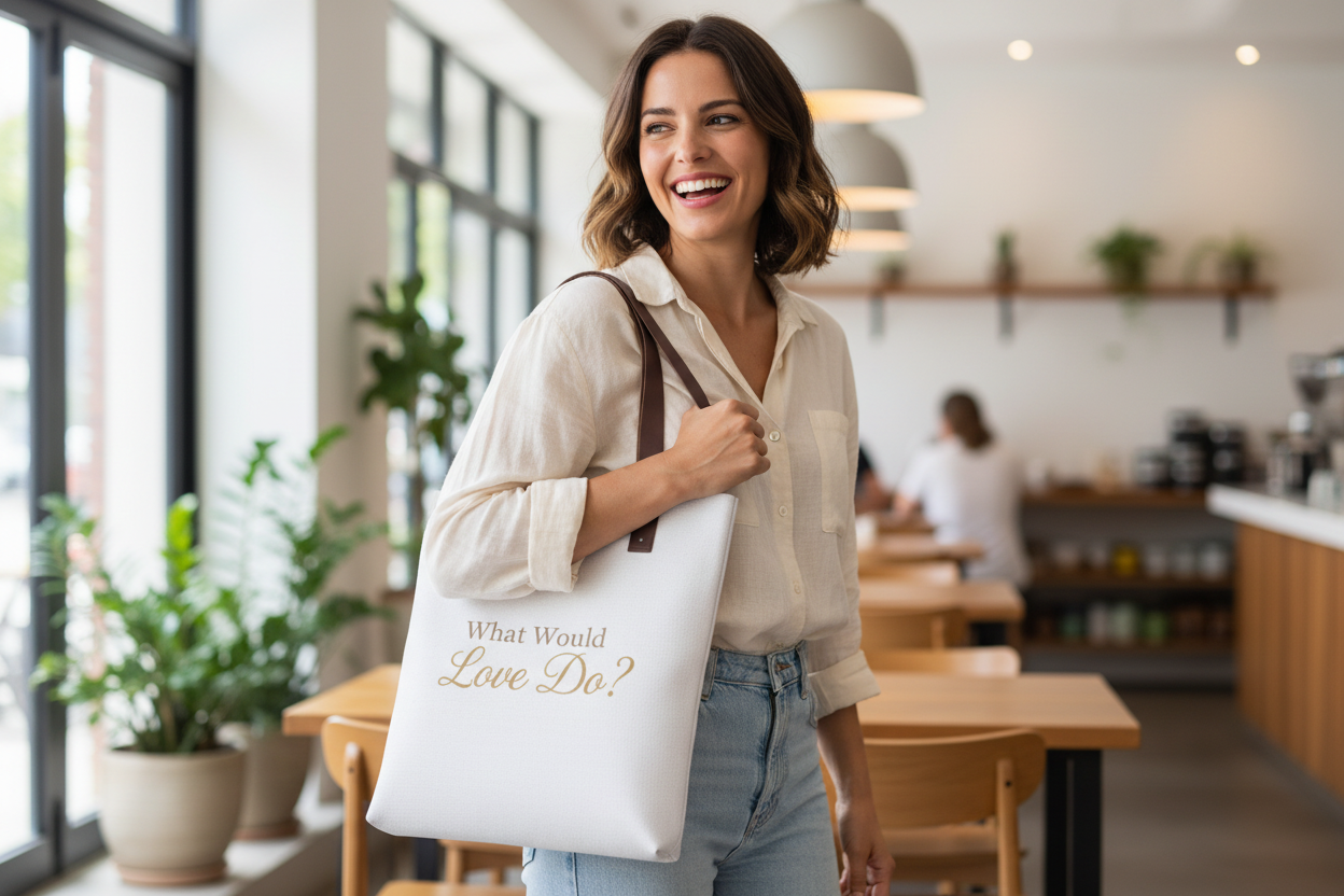 Carry your values with you wherever you go with our premium What Would Love Do? tote bag.